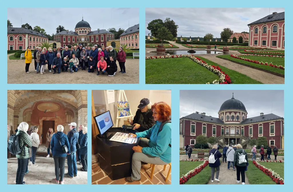 Ve dvou skupinách jsme si prohlédli zámecký okruh Zlaté časy ve službách císařovny a poté si užili oběd v místním zámeckém bistru. Po obědě následovala příjemná procházka zámeckým parkem zakončená kávou a dortem v kavárně.